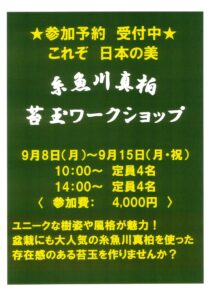 「糸魚川真柏苔玉ワークショップ」を開催します✨